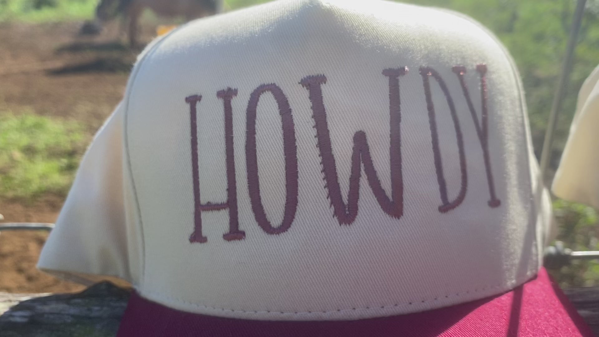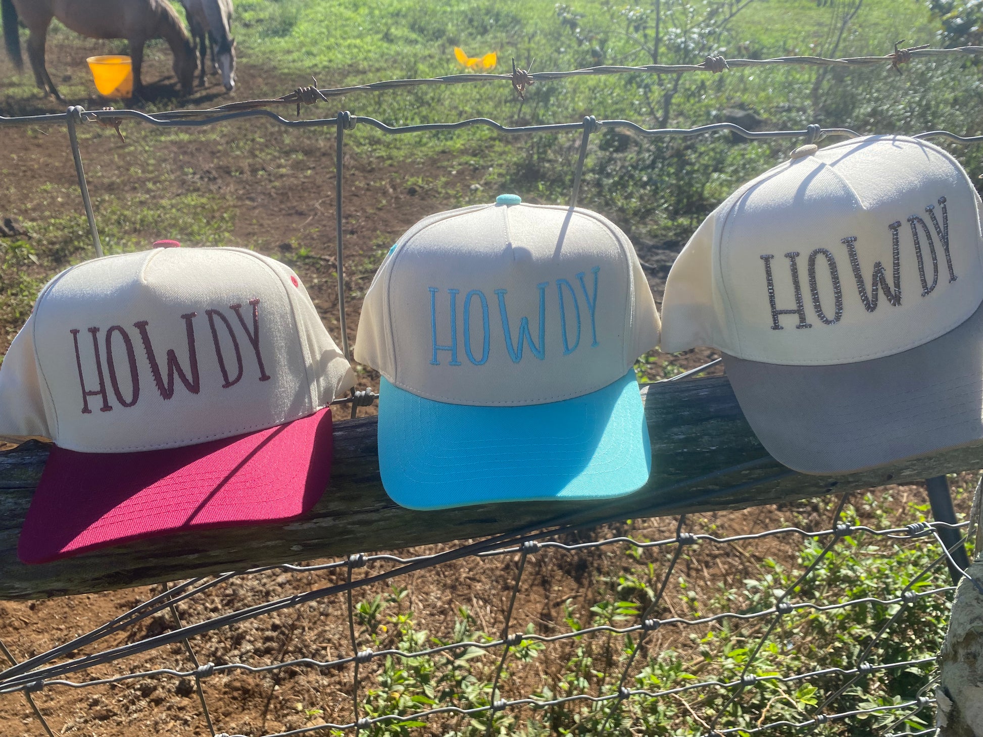 Each hat features a crisp “Howdy” front design, breathable mesh backing, and an adjustable snap for the perfect fit. Made for daily wear and built to last.